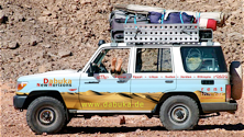 Our fleet consists of Toyota Land Cruisers HJ 60/80 and 76, and Hilux. They are all four-doors with forward-facing seats. All our vehicles are equipped with separate reserve fuel tanks and heavy duty springs. All vehicles also carry sand mats. We are well equipped with maps and use GPS for navigation. Along with radio communication we can ensure the safety of all our expeditions.