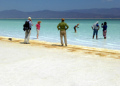 Djibouti Lake Assal, also known in French as Lac Assal, is a crater lake in central Djibouti and lies 515 feet below sea level. It’s shores comprise the lowest point of land on the African continent. It’s also one of the hottest places on earth and the air temperature can reach 140 °F and higher. This large surface of salt around the lake is about 2 feet thick and you can drive a car on the surface.